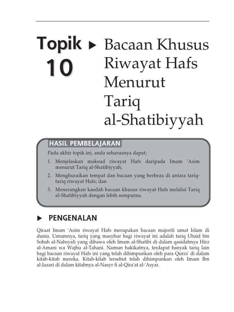 Topik 10 Bacaan Khusus Imam Asim Riwayat Hafs Tariq Syatibi Pdf